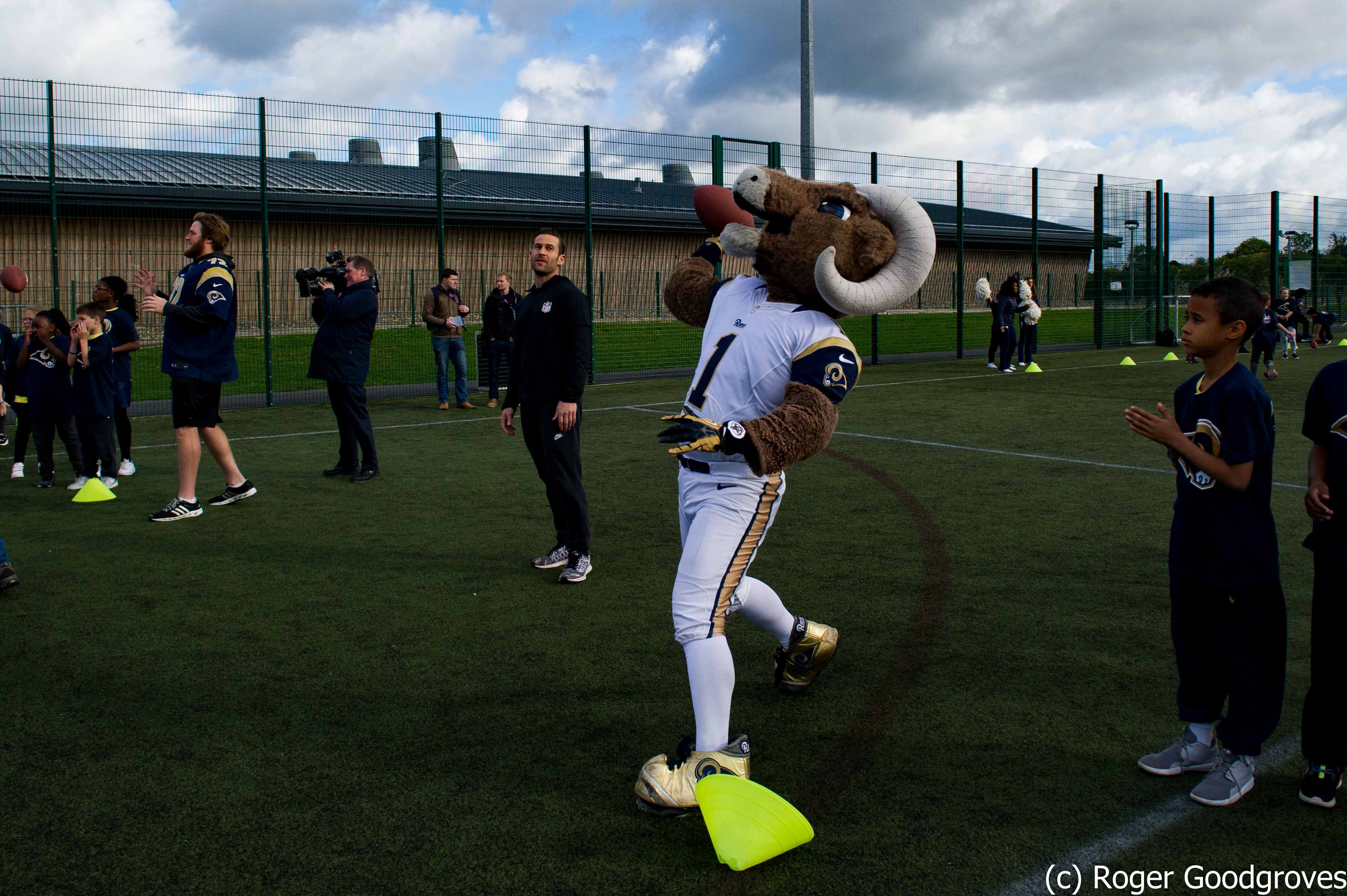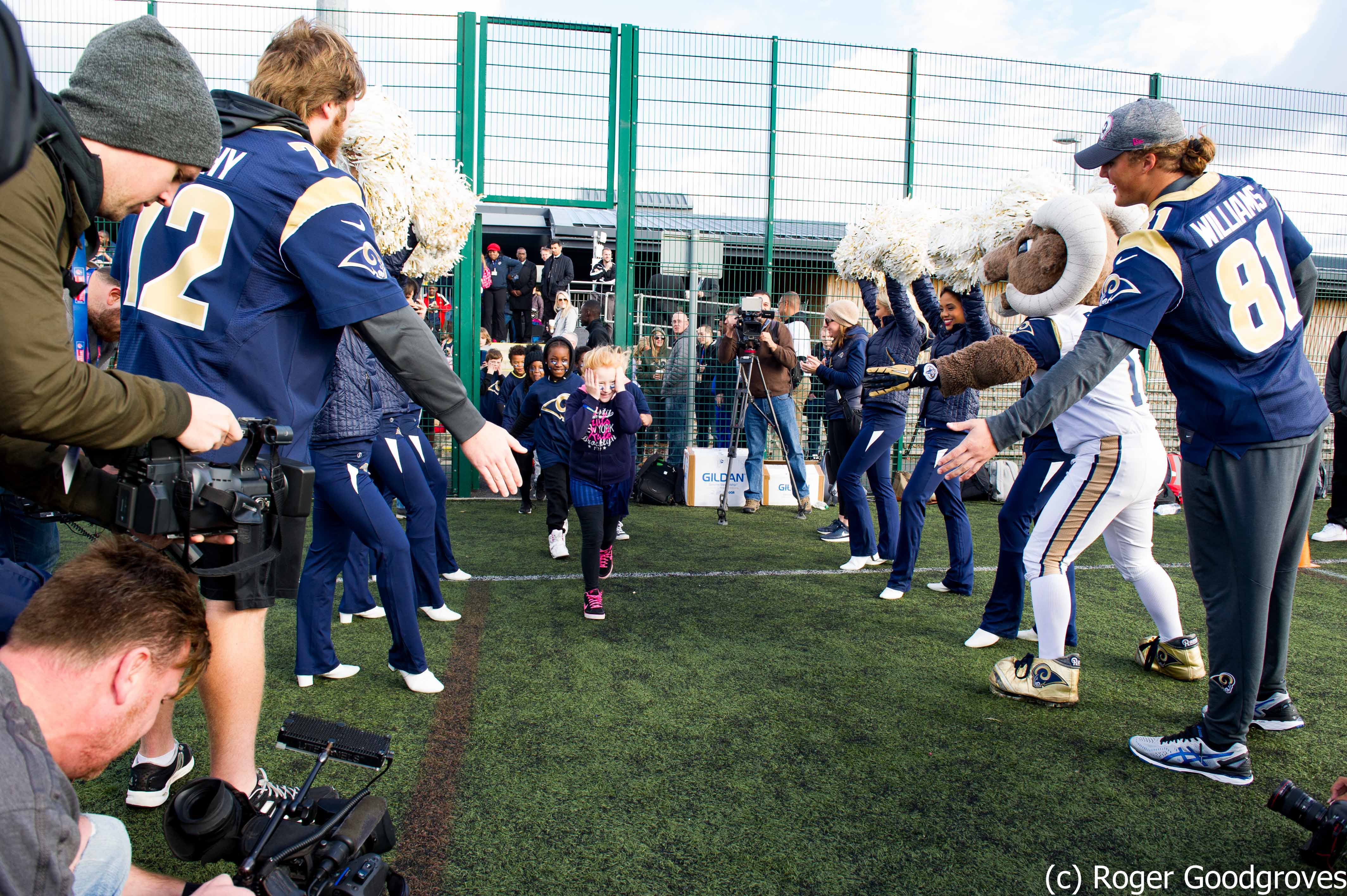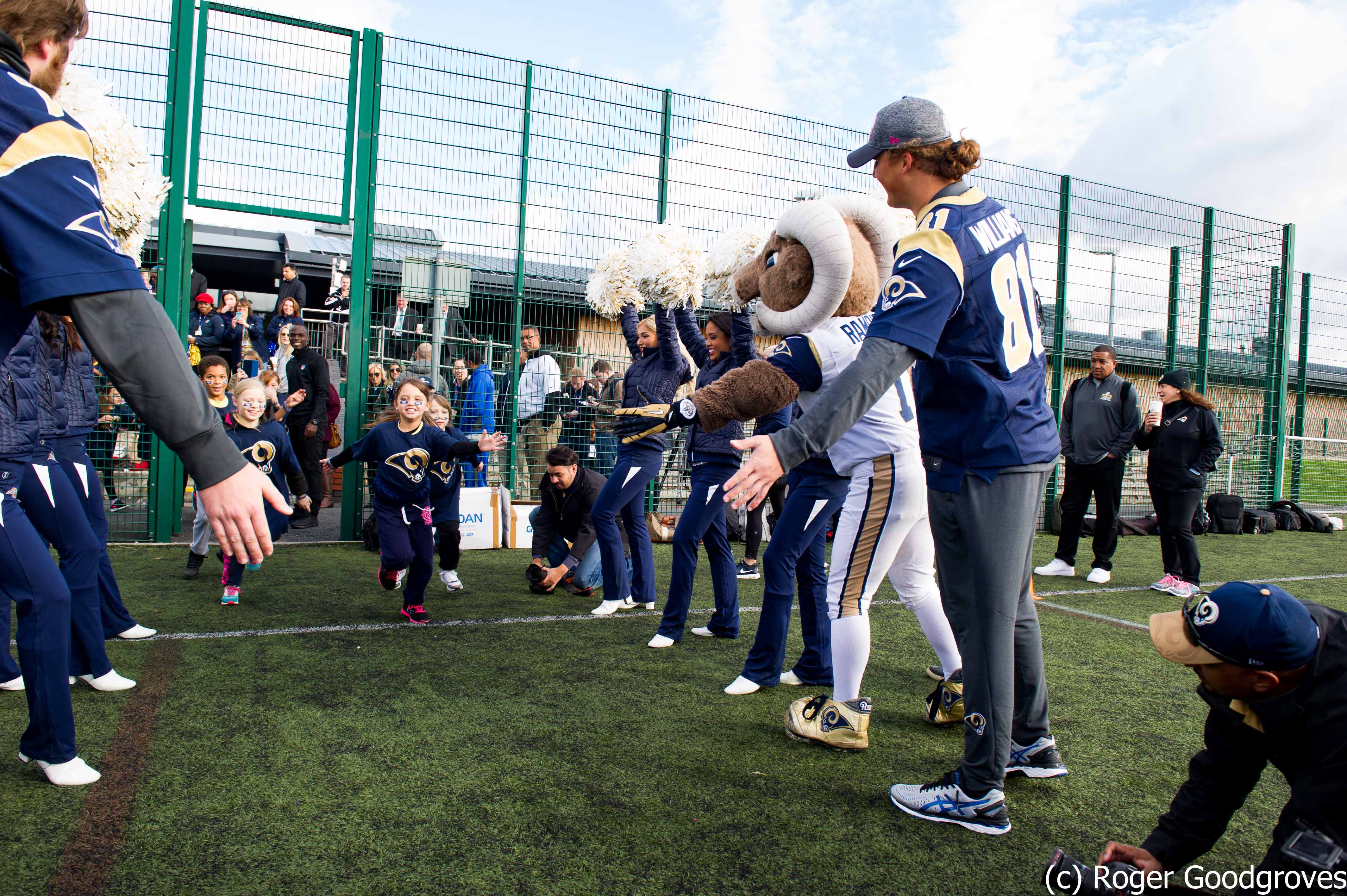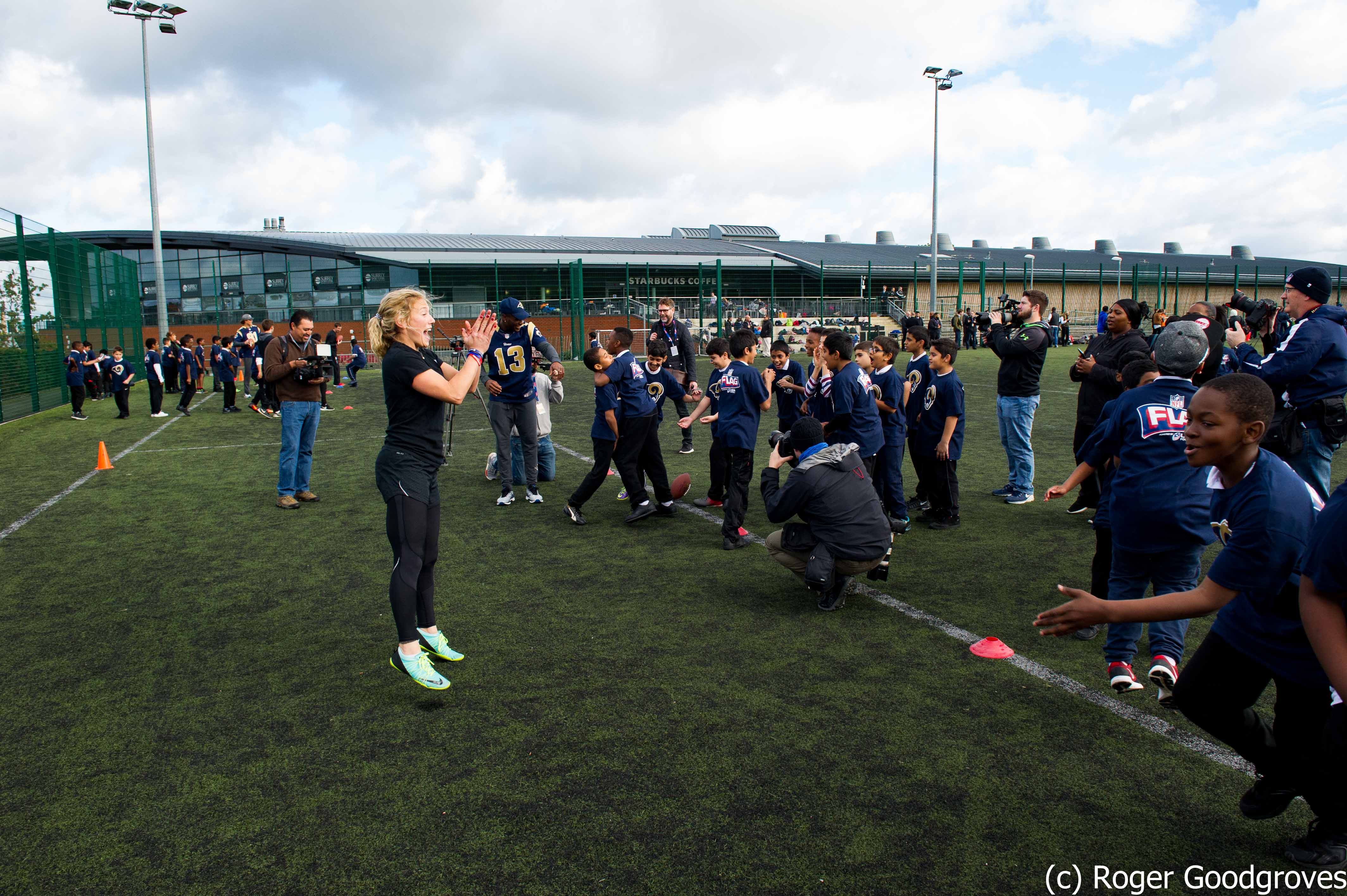 Today, the LA Rams started their time here in London by holding a community day at Surrey Sports Park. Players from the Rams staged football activity with children from London and surrounding areas.