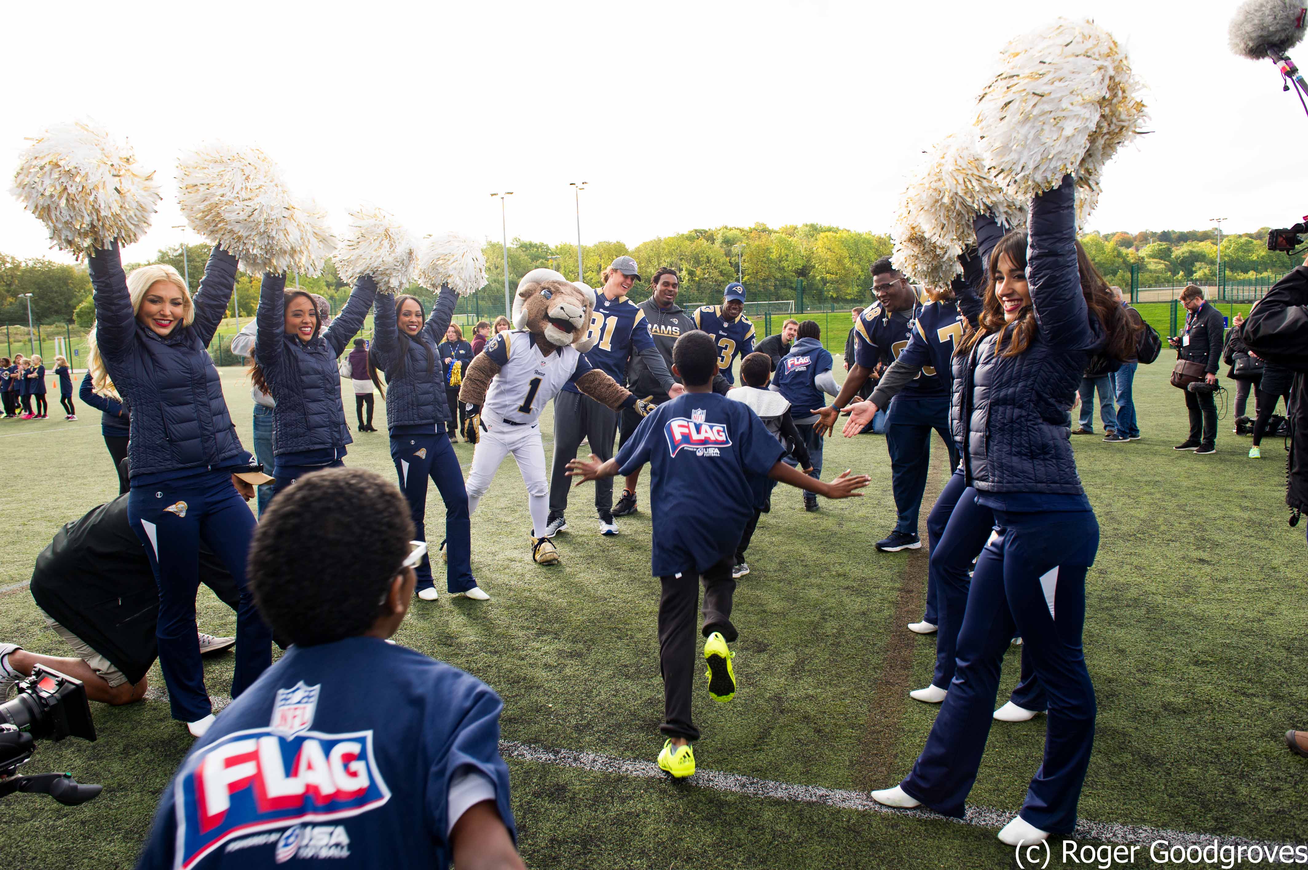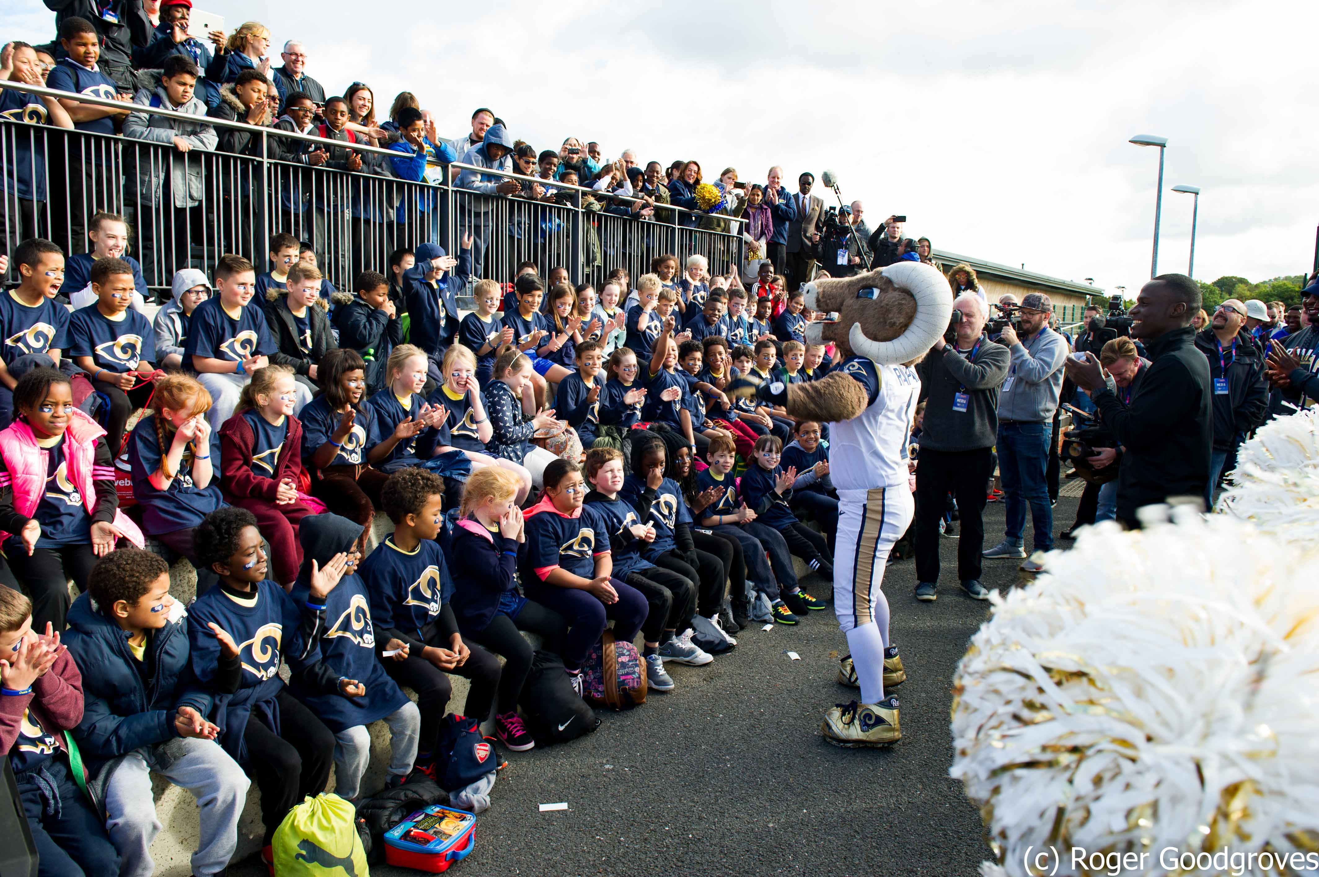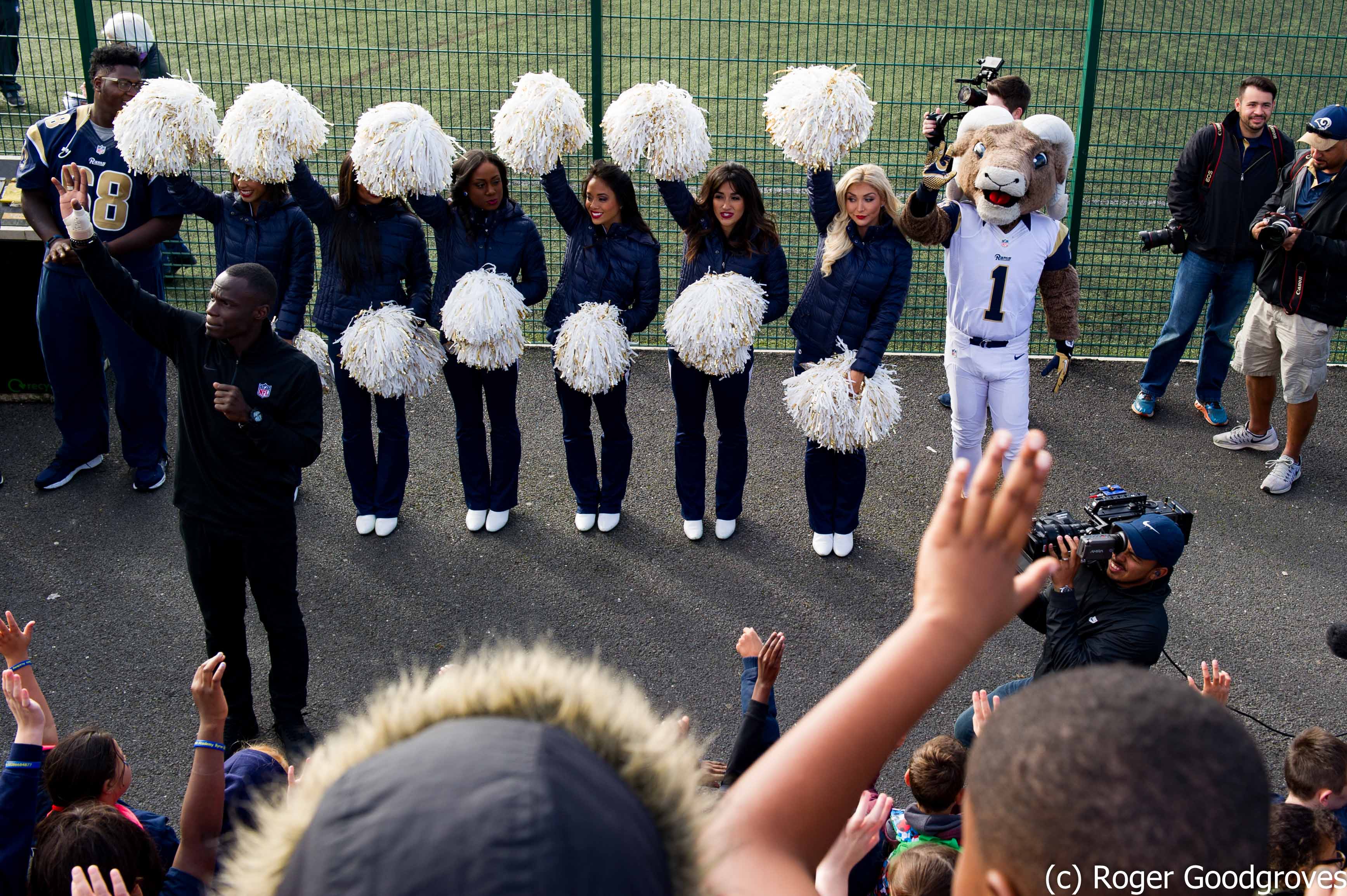 Today, the LA Rams started their time here in London by holding a community day at Surrey Sports Park. Players from the Rams staged football activity with children from London and surrounding areas.