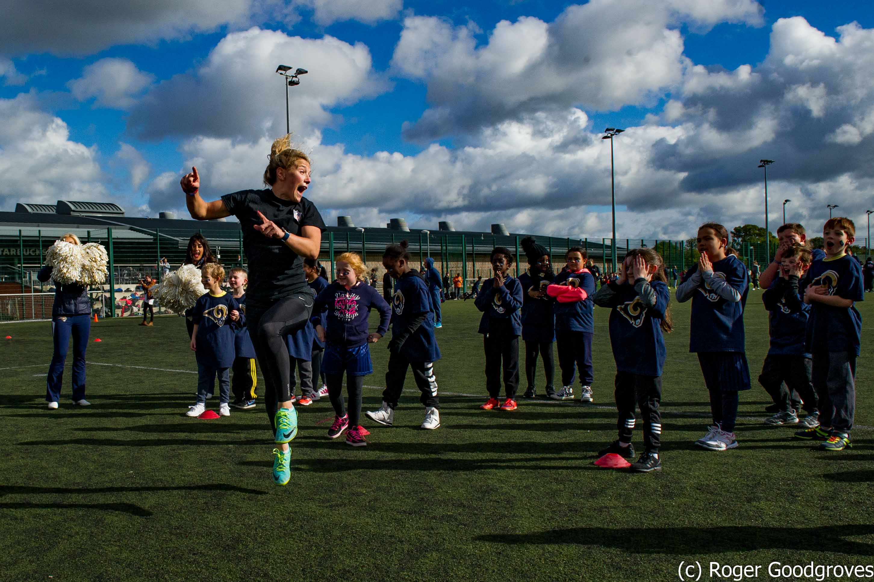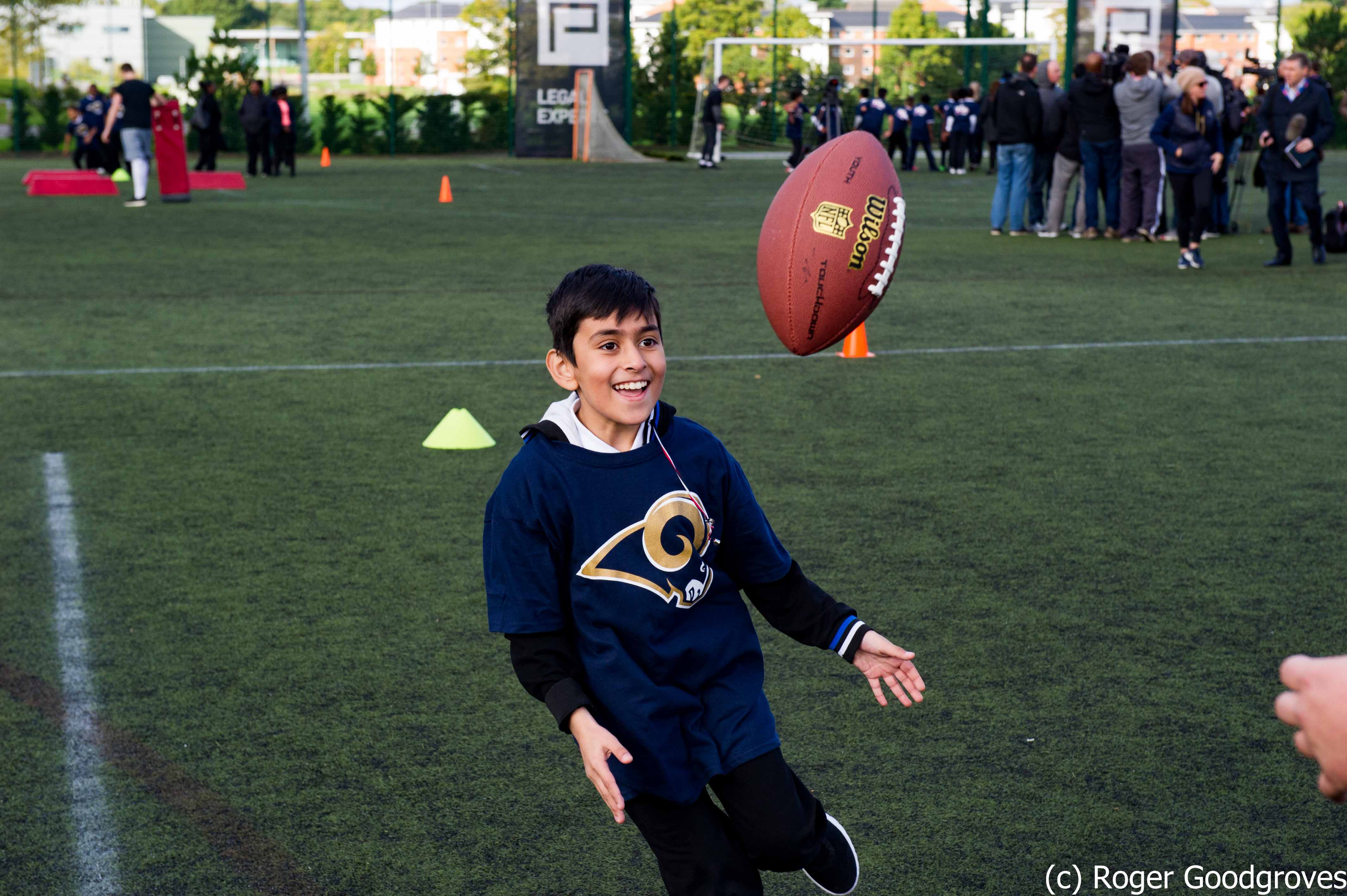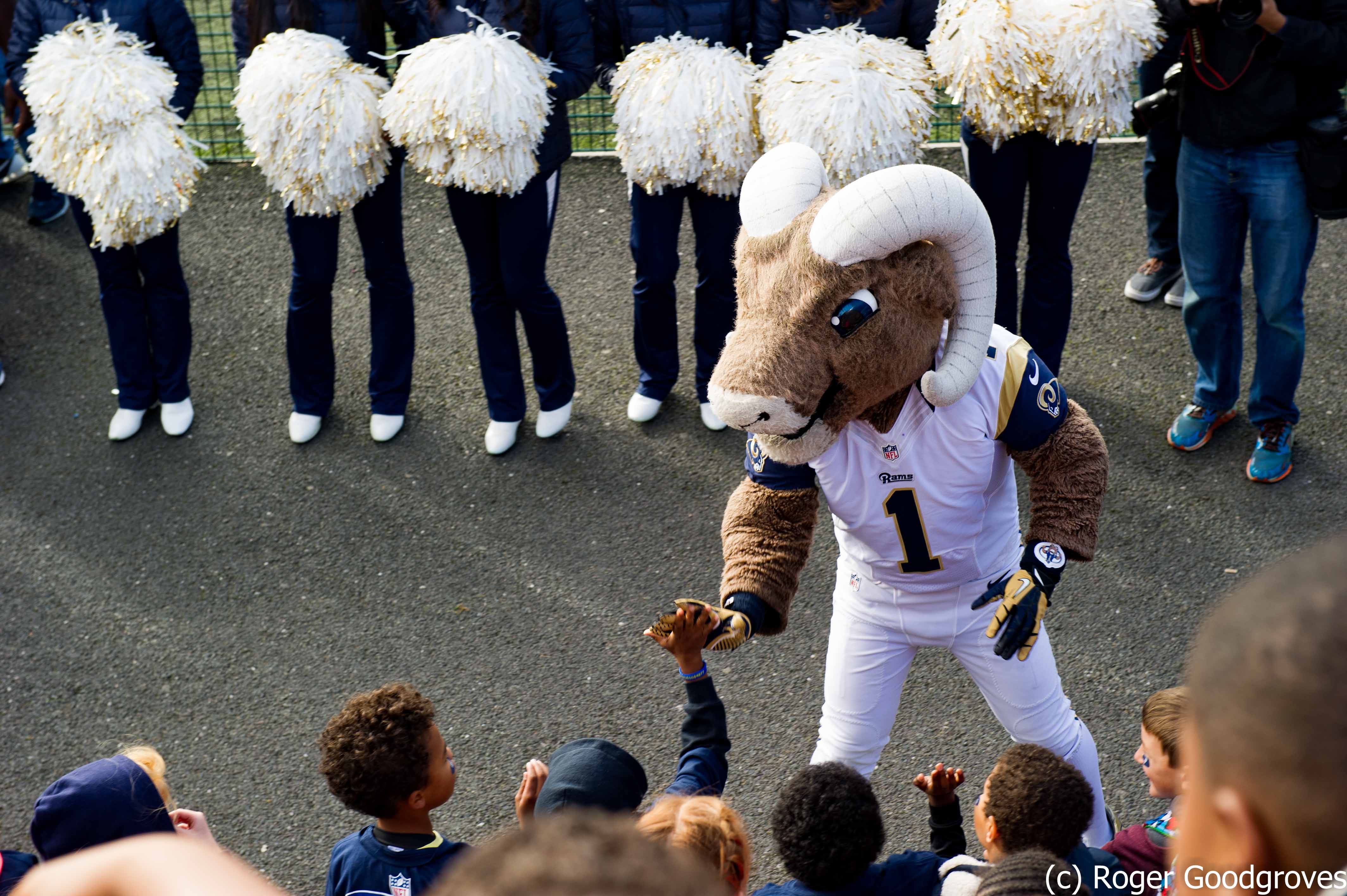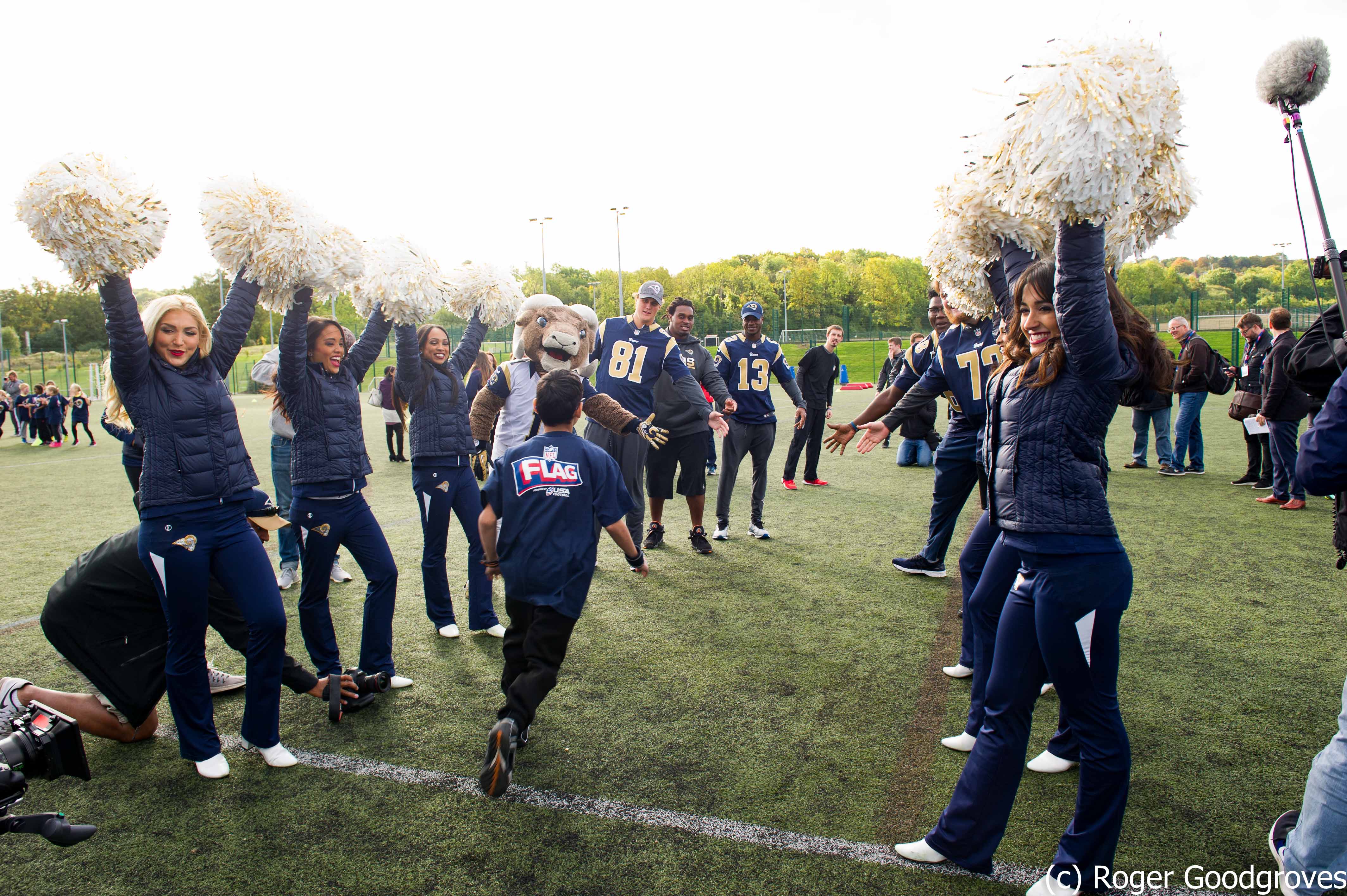 Today, the LA Rams started their time here in London by holding a community day at Surrey Sports Park. Players from the Rams staged football activity with children from London and surrounding areas.